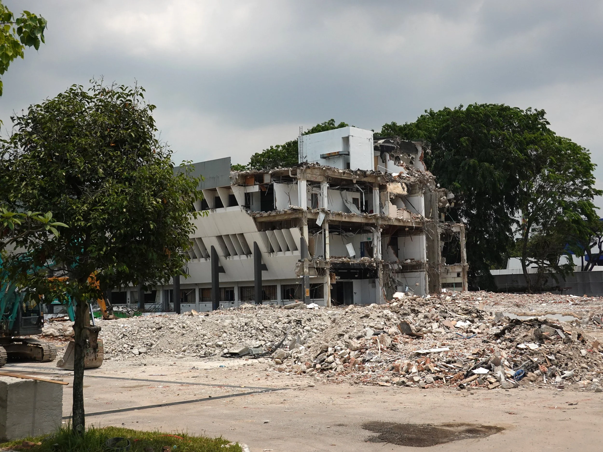 The partially demolished German-Singapore Institute (foreground), French-Singapore Institute (middle) and Singapore Science Centre (background). Photo by Darren Soh.